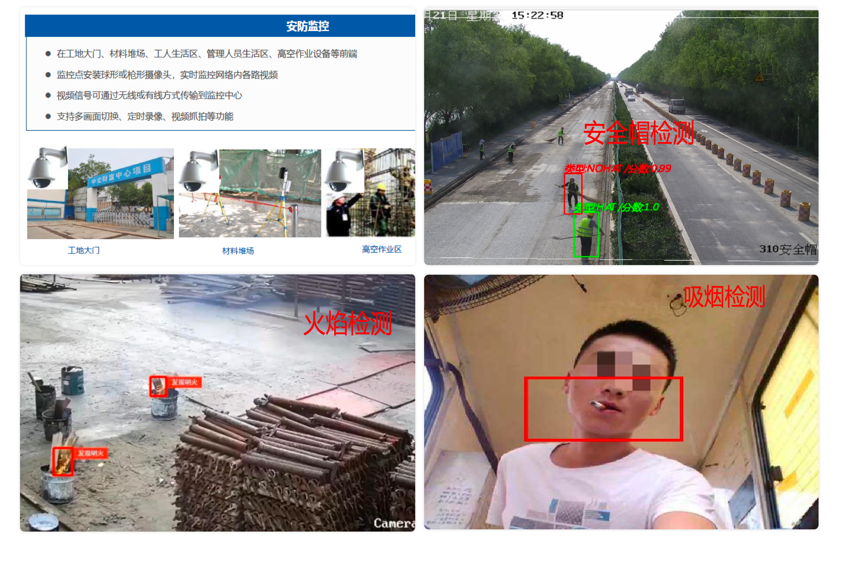 智能視頻監(jiān)控設(shè)備,利用邊緣算法實(shí)時對施工現(xiàn)場、人員行為、設(shè)備運(yùn)行狀態(tài)、施工環(huán)境等進(jìn)行監(jiān)控和預(yù)警,及時發(fā)現(xiàn)安