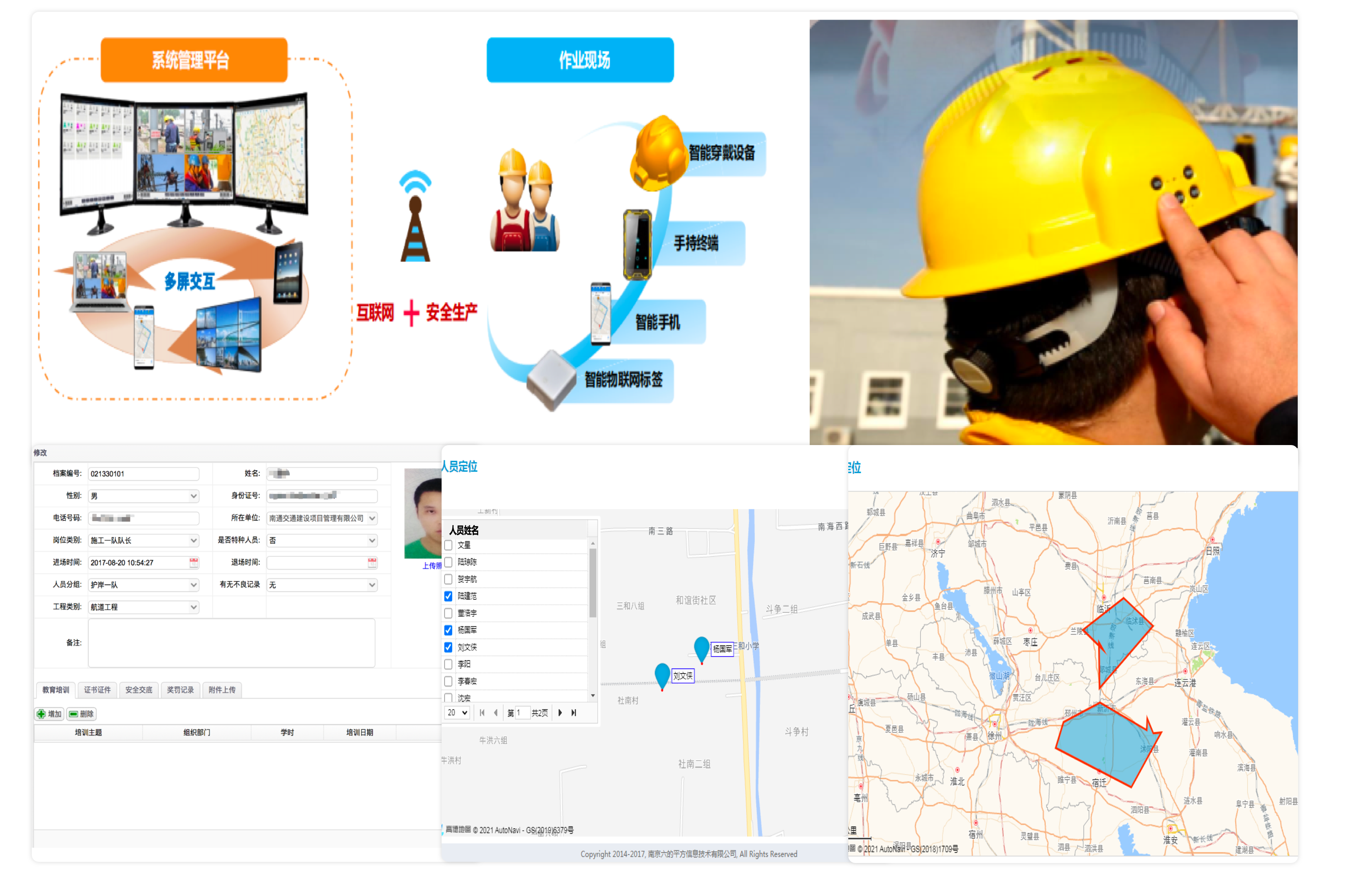 通過智能安全帽、考勤機(jī)硬件設(shè)備,結(jié)合PC端人員數(shù)據(jù)管理分析,實(shí)現(xiàn)項(xiàng)目人員實(shí)名制信息、考勤、工資、保險(xiǎn)、定位、軌跡